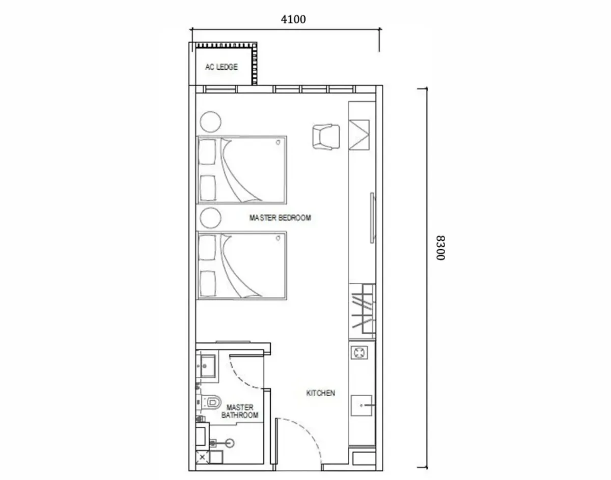 Type A-Studio : 336 sq.ft.